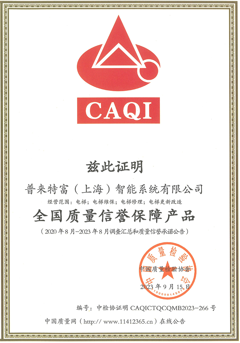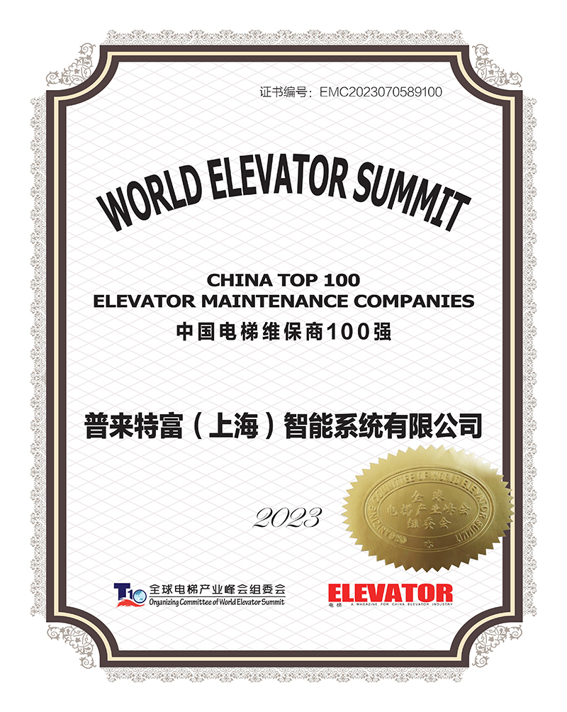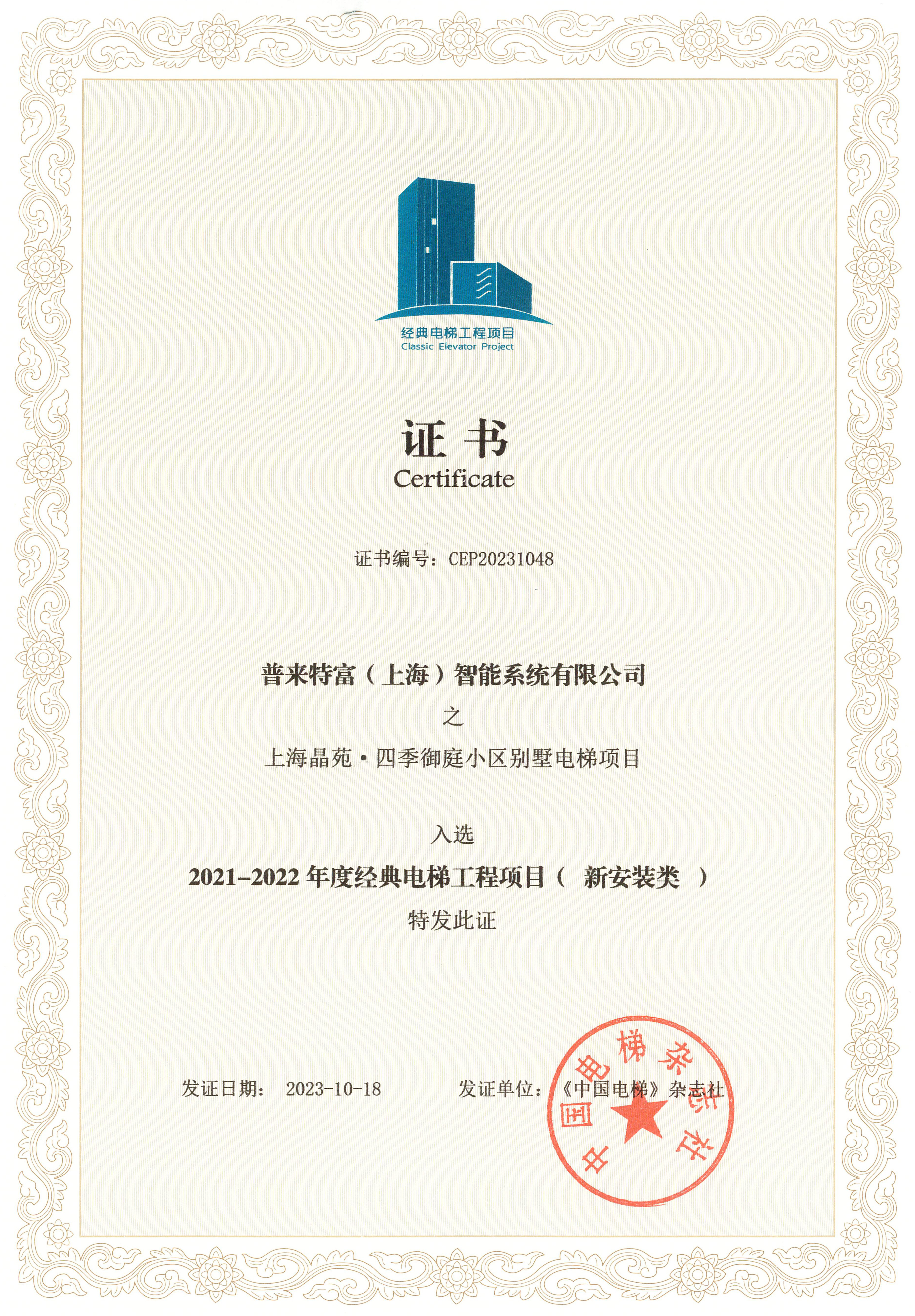 中国电梯2021-2022年度经典电梯工程项目获奖证书